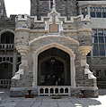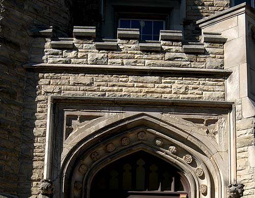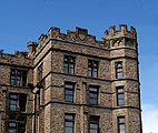 Castellation Any decoration on a building to make it look like a castle, usually a notched or indented parapet originally for protection so inhabitants could shoot through the openings in combat. See also crenellation and battlement. |