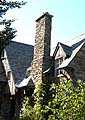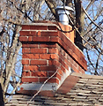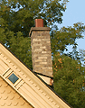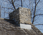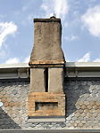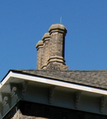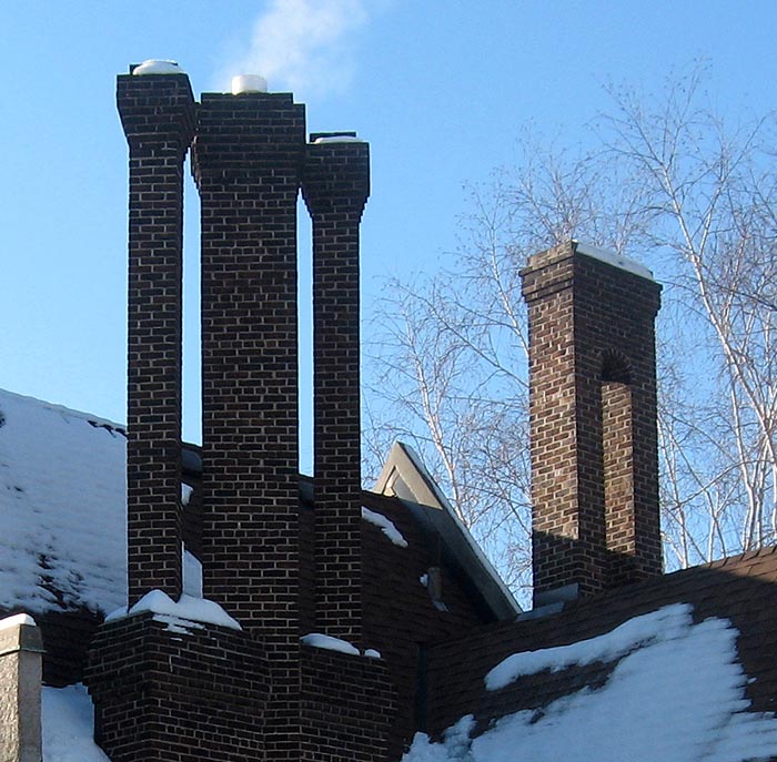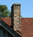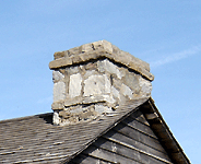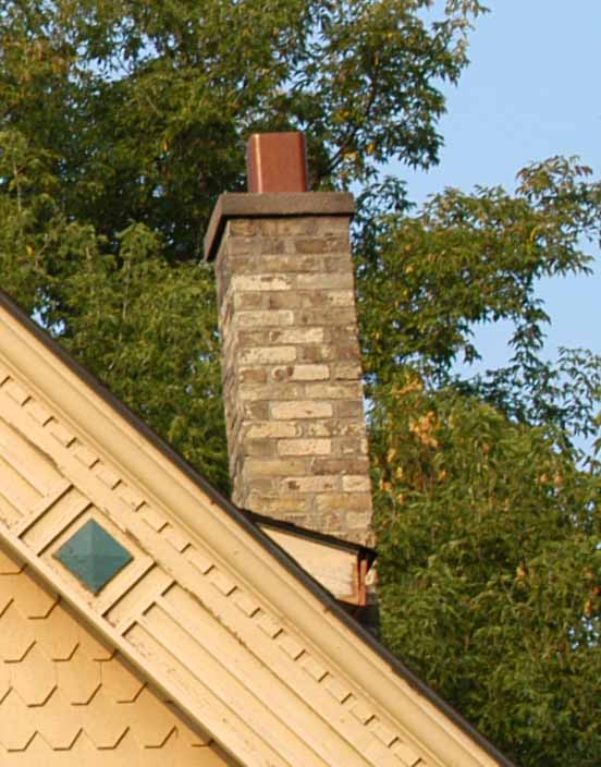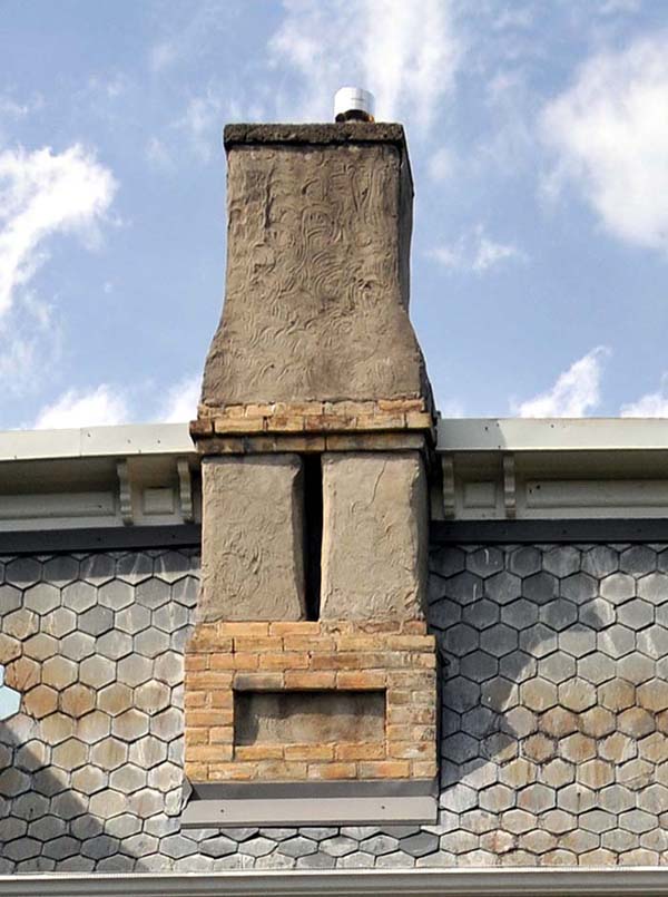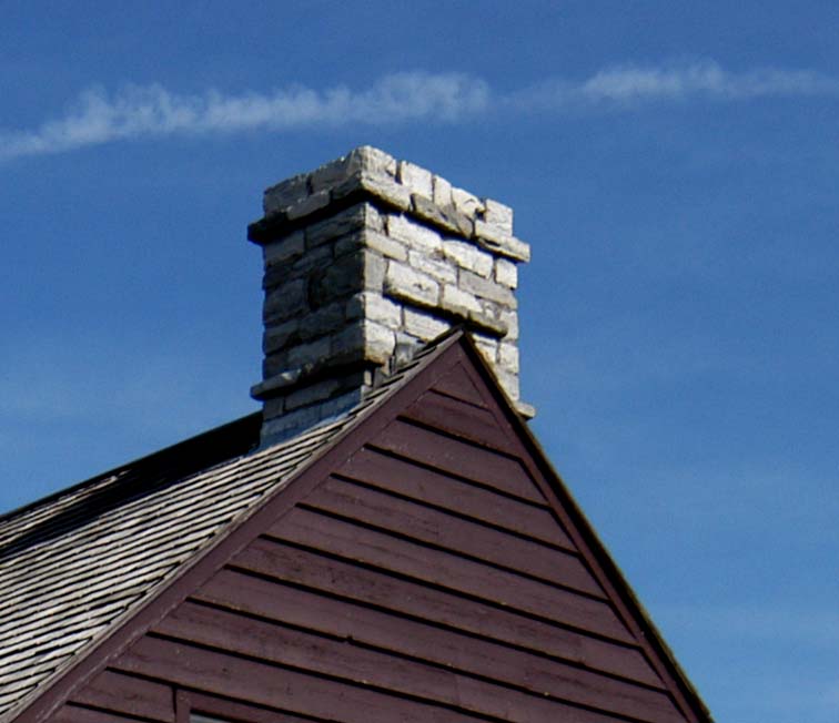 Chimney The stone, metal or masonry of a fireplace that extends up from the fireplace through the roof and carries the smoke outside. Chimneys can be either brick or stone. They can be wood with stucco and metal as well. |